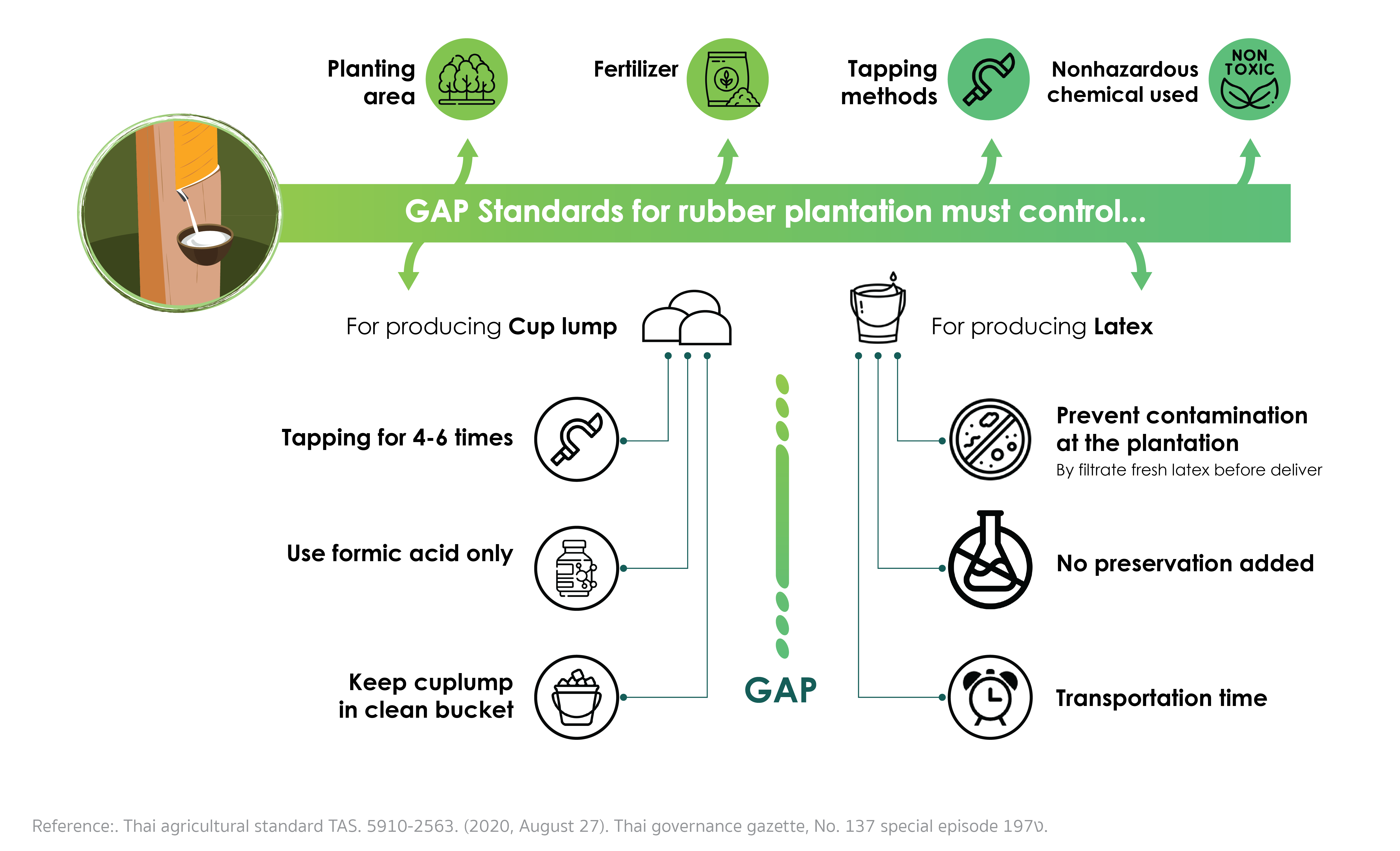 The GAP standard outlines specific methods for managing natural rubber plantations, including latex tapping practices, fertilizer used and delivery protocols. This standard ensures the quality of natural rubber materials and helps increase productivity in rubber production.